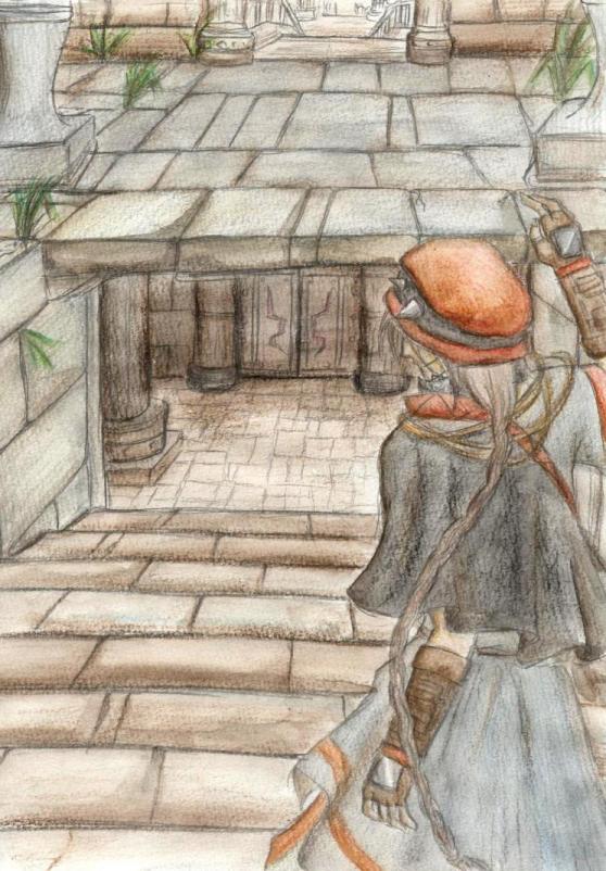 どう頑張っても倒壊するしかない遺跡+ガンベッタの絵。