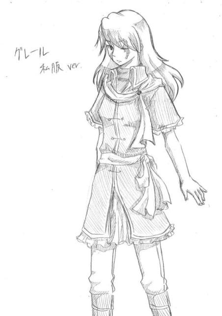 追記から、先日ついったに流した落書きと、今日大学で描いた私服グレール。
